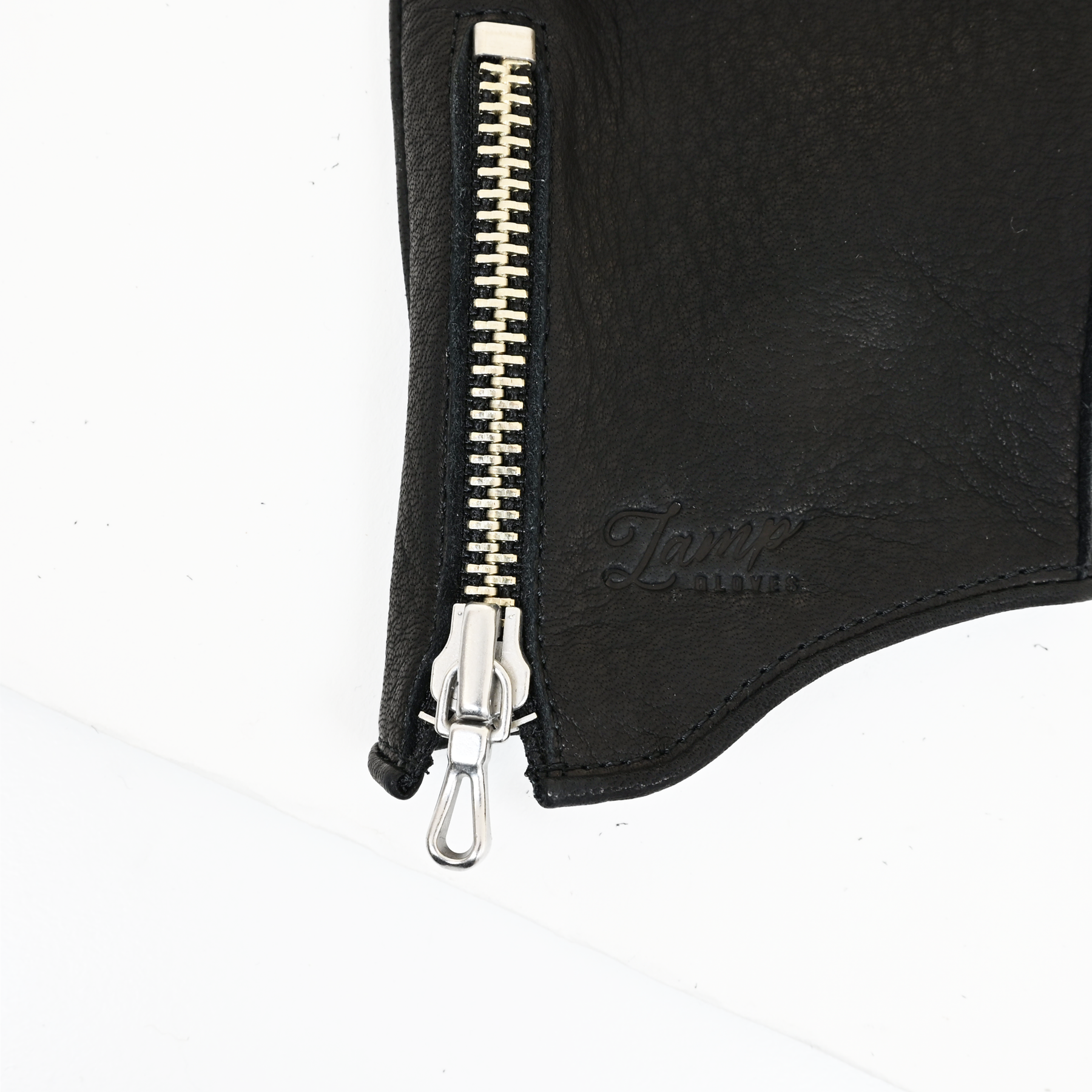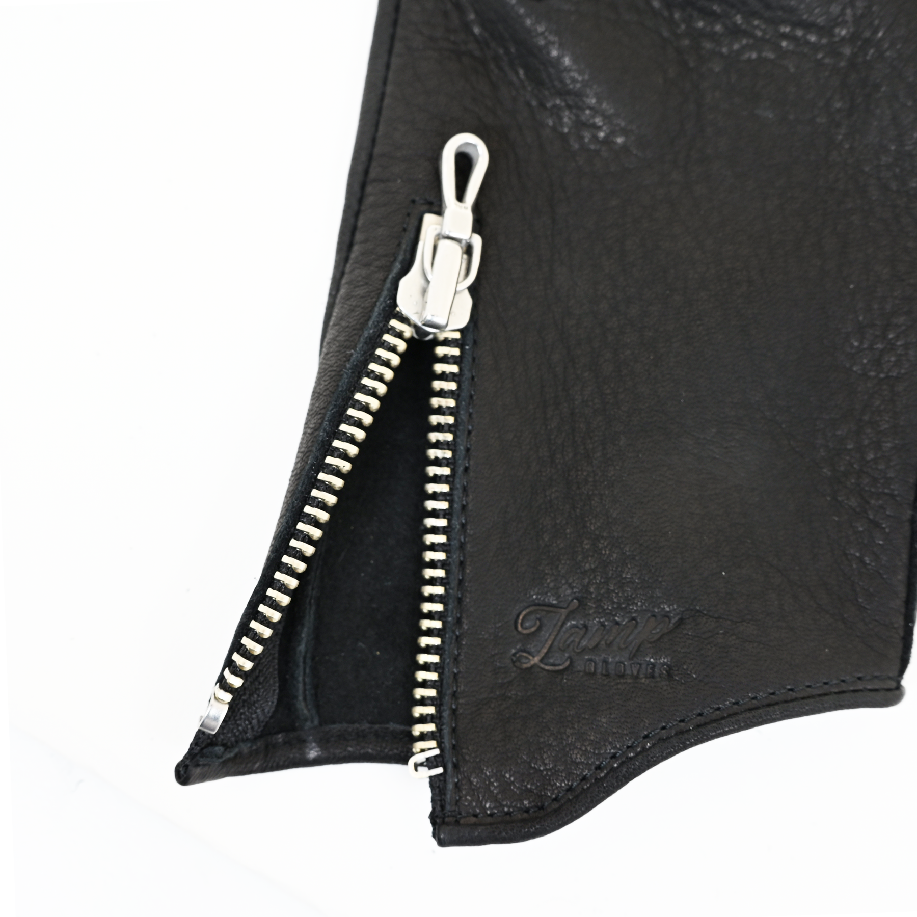 ロゴは通常のLamp glovesロゴではなく、本モデル専用のシグネチャーロゴを型押しで表現。ミニマルでありながら存在感のある仕上がりです。